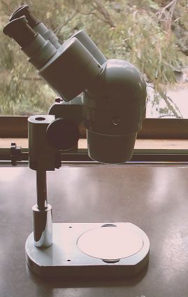 The stereo microscopeThe stereo microscope, like the monocular light microscope, uses beams of light to make the image you see.However, while the monocular microscope (which sometimes has two eyepieces, and is then called binocular) allows us to examine thin specimens,the stereo microscope allows us to look at larger parts of organisms with a 3D like view. Show me a picture of one!! Your teacher will show you how to carry and set up this microscope. Task