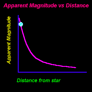 decreases as the distance bewteen us and the star increases. See animation