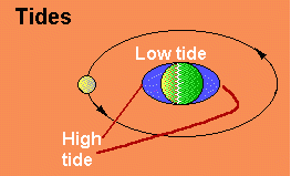 For many organisms in the ocean, especially those living near the shoreline, tides are very important. At low tide, these organisms are exposed to the air, and perhaps fresh water. At high tide, shoreline organisms are bathed in sea water which brings with it both nutrients and food organisms, and removes wastes and products of reproduction. The daily rhythm of many organisms is based on the rhythm of the tides. The tides are due to the moon's gravitational attraction of the Earth and its oceans, so that a bulge of water is formed on the side of the Earth facing the moon, and on the opposite side as well.